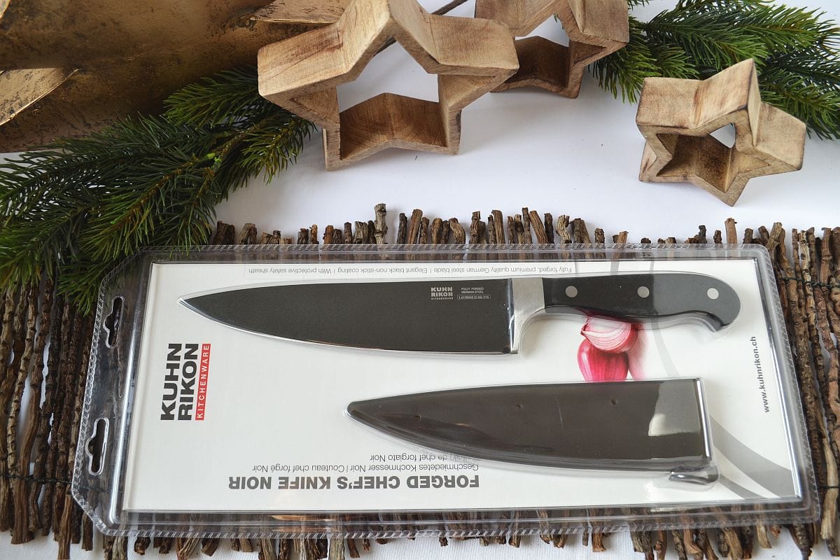 Heute, am 11. Tag unseres Adventskalenders, gibt es wieder etwas „Scharfes“ zu gewinnen. Hinter dem Türchen verbirgt sich ein Kochmesser der Firma Kuhn Rikon. Es besteht aus einer durchgehenden Klinge, die aus deutschem Stahl geschmiedet und vernietet ist. Das Messer ist wirklich gut ausbalanciert und liegt somit perfekt in der Hand. Die Klinge ist mit einer Antihaftbeschichtung versehen. Diese verhindert, dass das Schneidgut an der Klinge hängen bleibt und erleichtert so die Schneidarbeit. Der mitgelieferte Klingenschutz sorgt dafür, dass die Schneide immer optimal abgedeckt ist und auch dann nicht abnutzt, wenn das Messer in einer Schublade aufbewahrt wird. Die Größe des Messers ist ideal für die alltäglichen Schneidarbeiten in der Küche. Fleisch, Obst, Gemüse, Käse – alles kein Problem.
