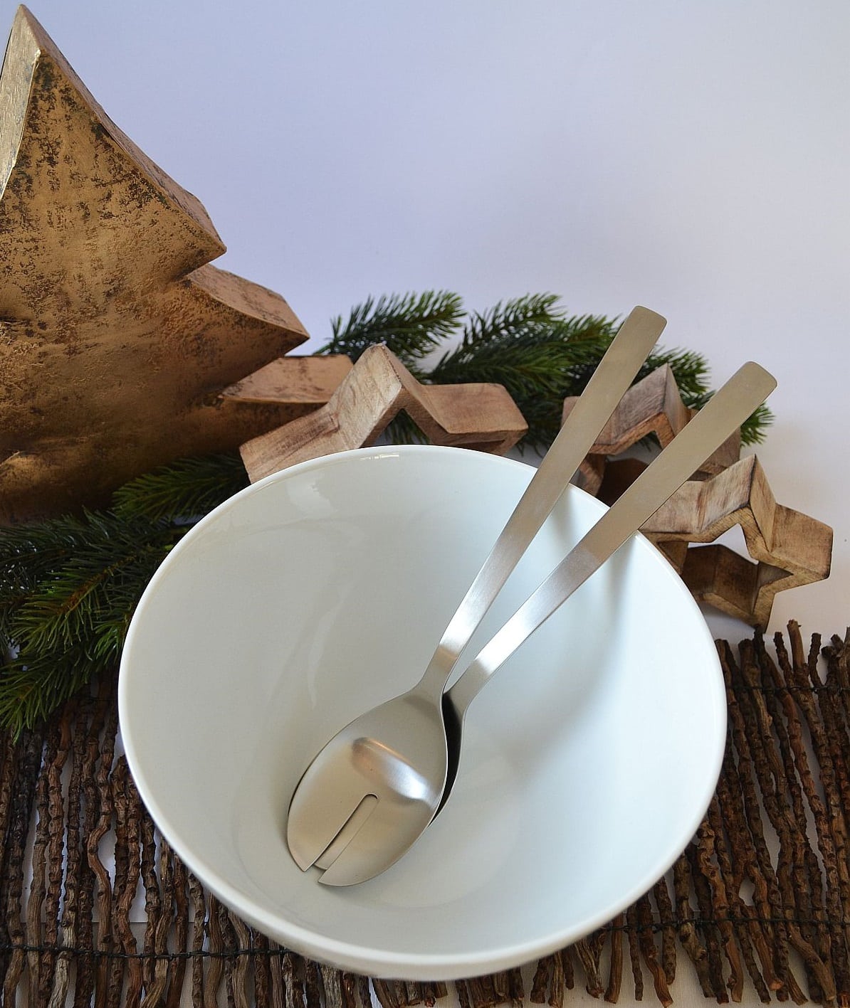 Heute gibt es eine wunderschöne Salatschüssel mit passendem Besteck von der Firma Auerhahn zu gewinnen. Die Schüssel ist in schlichtem, eleganten weiß gehalten. Die Größe ist ideal für Blattsalate oder auch für eine große Portion Kartoffel- oder Nudelsalat wenn eine große Meute zu verpflegen ist. Die Salatschüssel passt auf jeden Tisch und wertet jede festlich gedeckte Tafel auf. Das passende Salatbesteck ist aus mattem Edelstahl gefertigt und liegt gut in der Hand. Insgesamt ein wirklich edles Set.