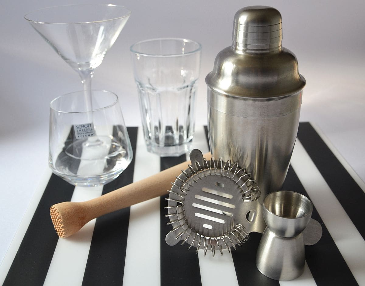 Dann möchte man die gemixten Cocktails natürlich nicht direkt aus dem Shaker trinken. Mit drei verschiedenen Arten von Gläsern kommt man schon sehr weit und kann viele Cocktail stilecht servieren. Hierzu zählen Martiniglas, Becherglas und Longdrinkglas. Und wenn man der Cocktailbar in nichts mehr nachstehen möchte, investiert man noch in ein paar hübsche Strohhalme und kleine Schirmchen, die das richtige Urlaubsgefühl vermitteln.