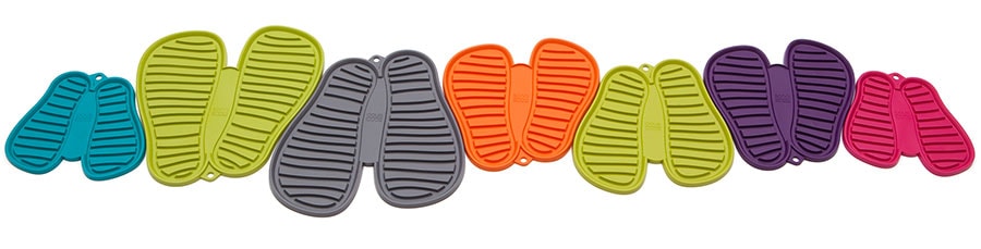 Die Matten sind elastisch und alle mit einem Aufhänger versehen. So können Sie diese gut verstauen, wenn die Matten gerade nicht benötigt werden. Toll ist auch, dass immer nur so viele ausgelegt werden müssen, wie tatsächlich gebraucht werden. Die tiefen Rillen in den shoo.pads sorgen dafür, dass die Schuhe schnell abtropfen und abtrocknen können. Die Pads können entweder mit Wasser und Seife gereinigt werden oder sogar bei 30°C in der Waschmaschine gewaschen werden. Wichtig ist dann nur, dass sie flach liegend trocknen können. Die Matten sind aus einem BPA und PVC-freiem elastischem TPE in Italien hergestellt.