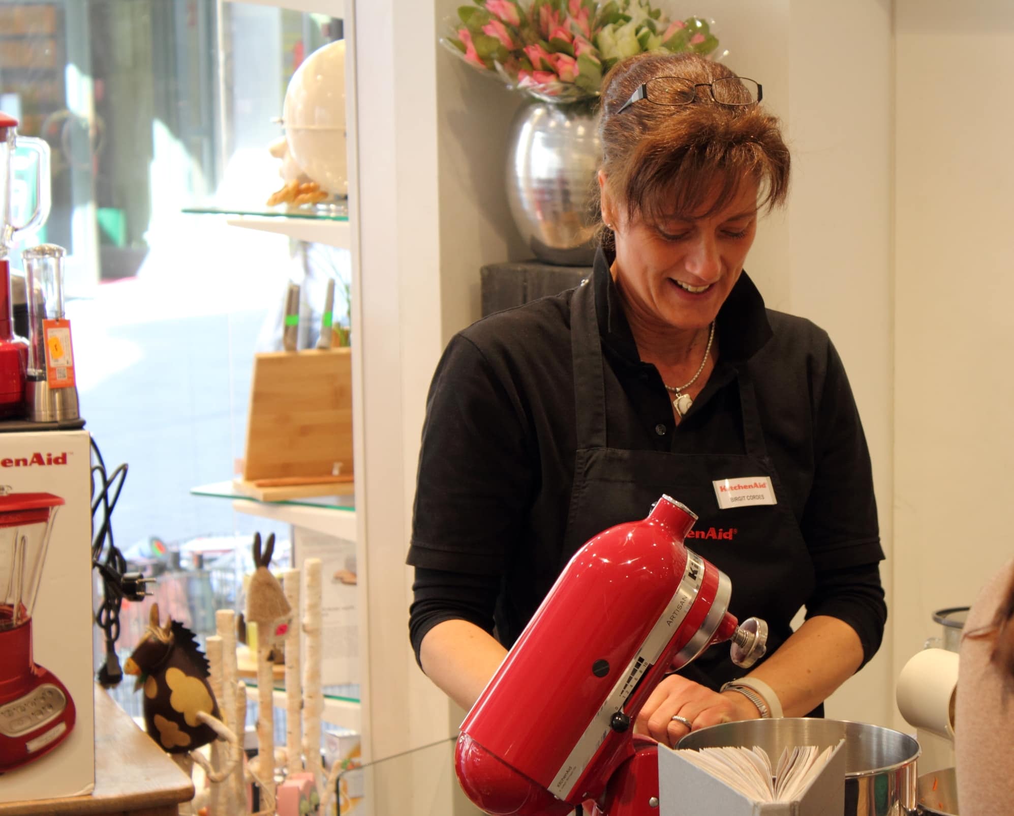 Die Kitchenaid Fachexpertin Frau Cordes begleitete die Veranstaltung und war während unserer Öffnungszeit vor Ort, um unseren Kundinnen und Kunden die Küchengeräte live zu präsentieren. So konnten Interessierte, Neugierige und Kitchenaid-Fans die Kult-Küchenmaschine hautnah erleben und weitere Küchengeräte in Aktion bewundern.