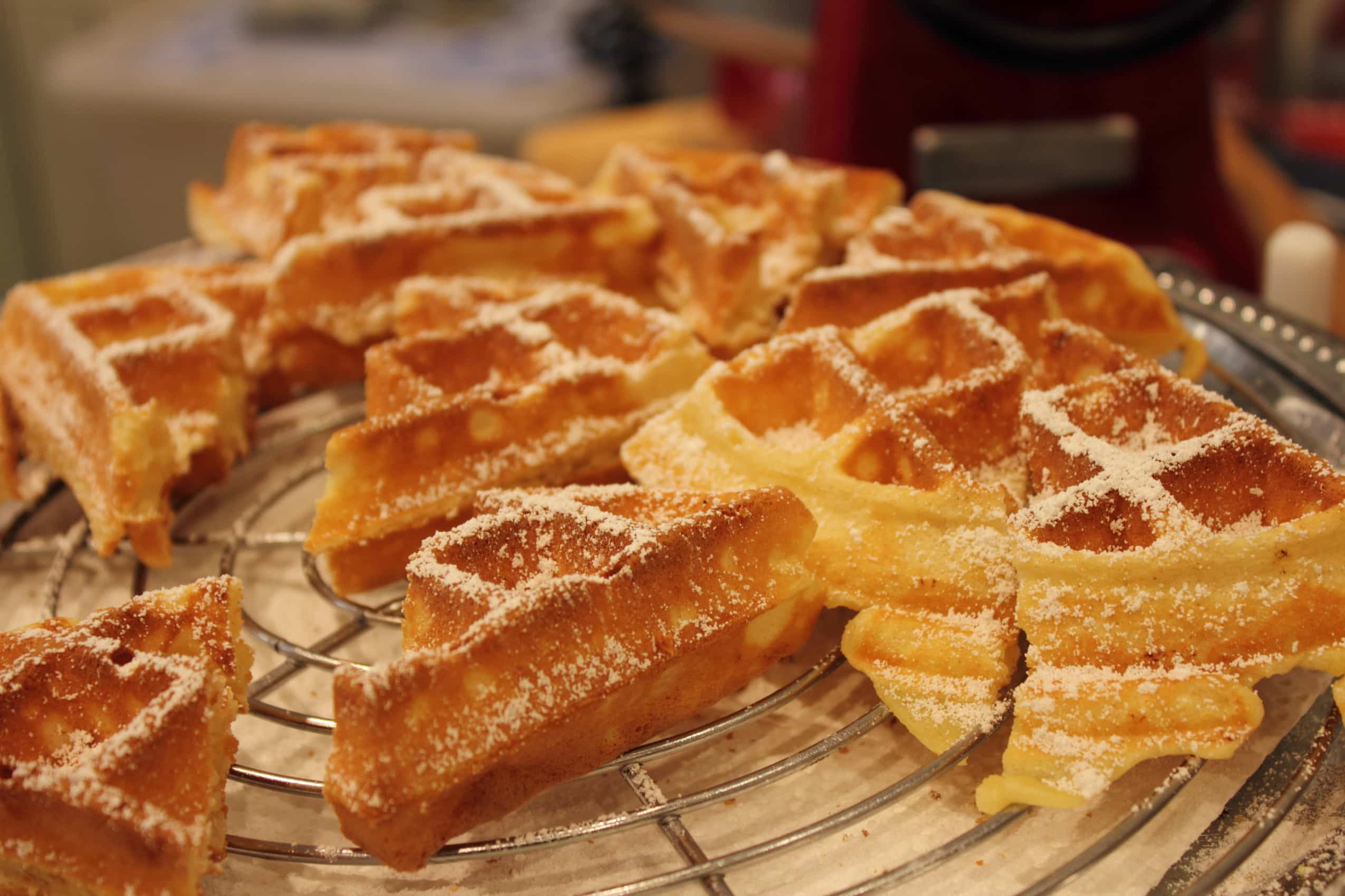 Ein Highlight waren auf jeden Fall die köstlichen Belgischen Waffeln aus dem Kitchenaid Waffeleisen. Die Waffeln werden in einer besonders tiefen Pfanne ausgebacken, deswegen nehmen sie in ihren Kammern Früchte, Honig, Sirup oder auch Eis so toll auf. Aber auch „simpel“ mit Puderzuzcker bestäubt sind die Waffeln wirklich ausgezeichnet und unserer Ansicht nach kaum mit Waffeln aus herkömmlichen Waffeleisen zu vergleichen.