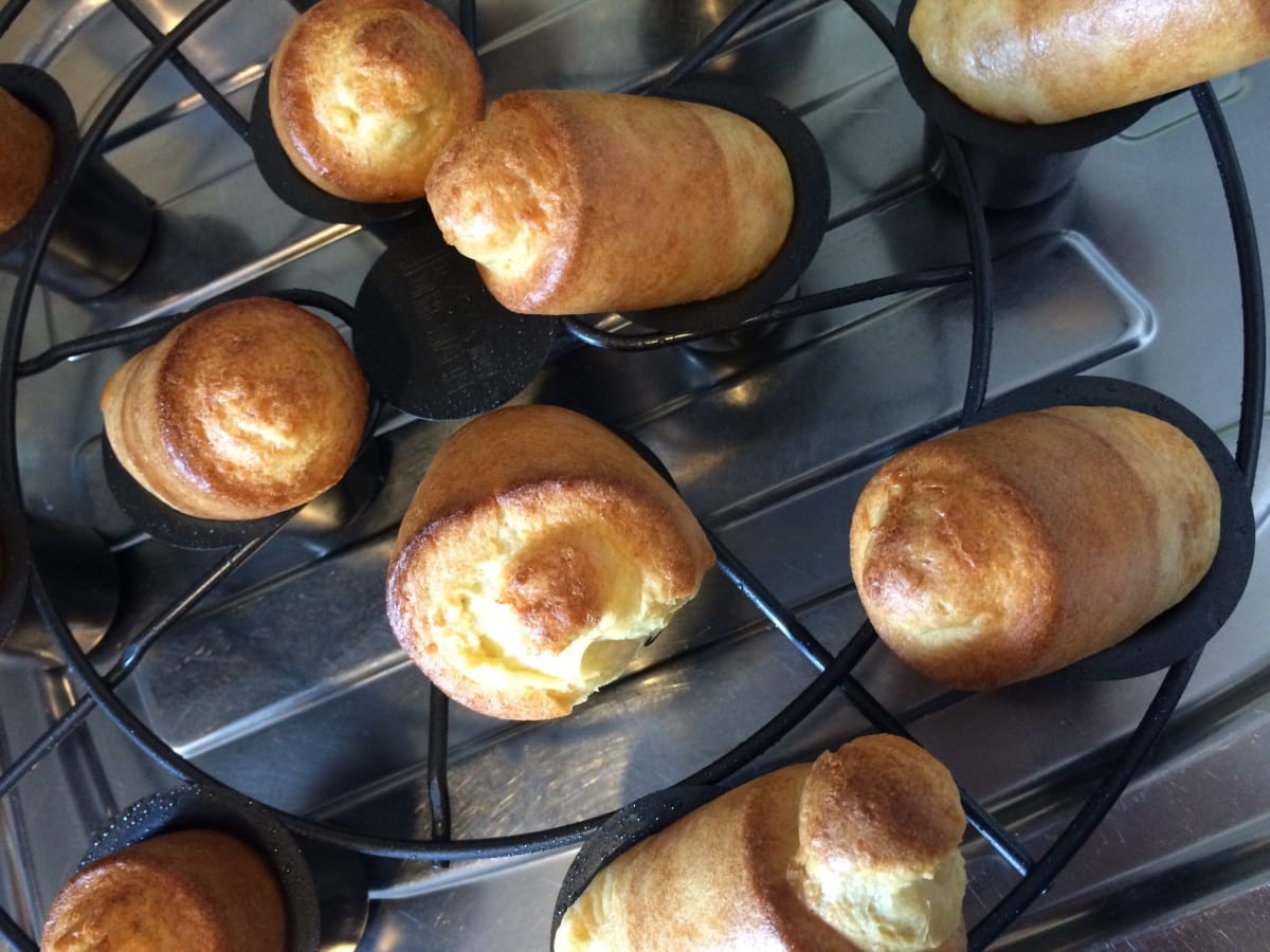 Entscheidend bei der Zubereitung von PopOvers ist eine hohe Anfangstemperatur, damit diese schnell und hoch aufgehen können. Die vorgeheizte Popover-Form daher möglichst rasch befüllen, und die Ofentür nur kurz öffnen.