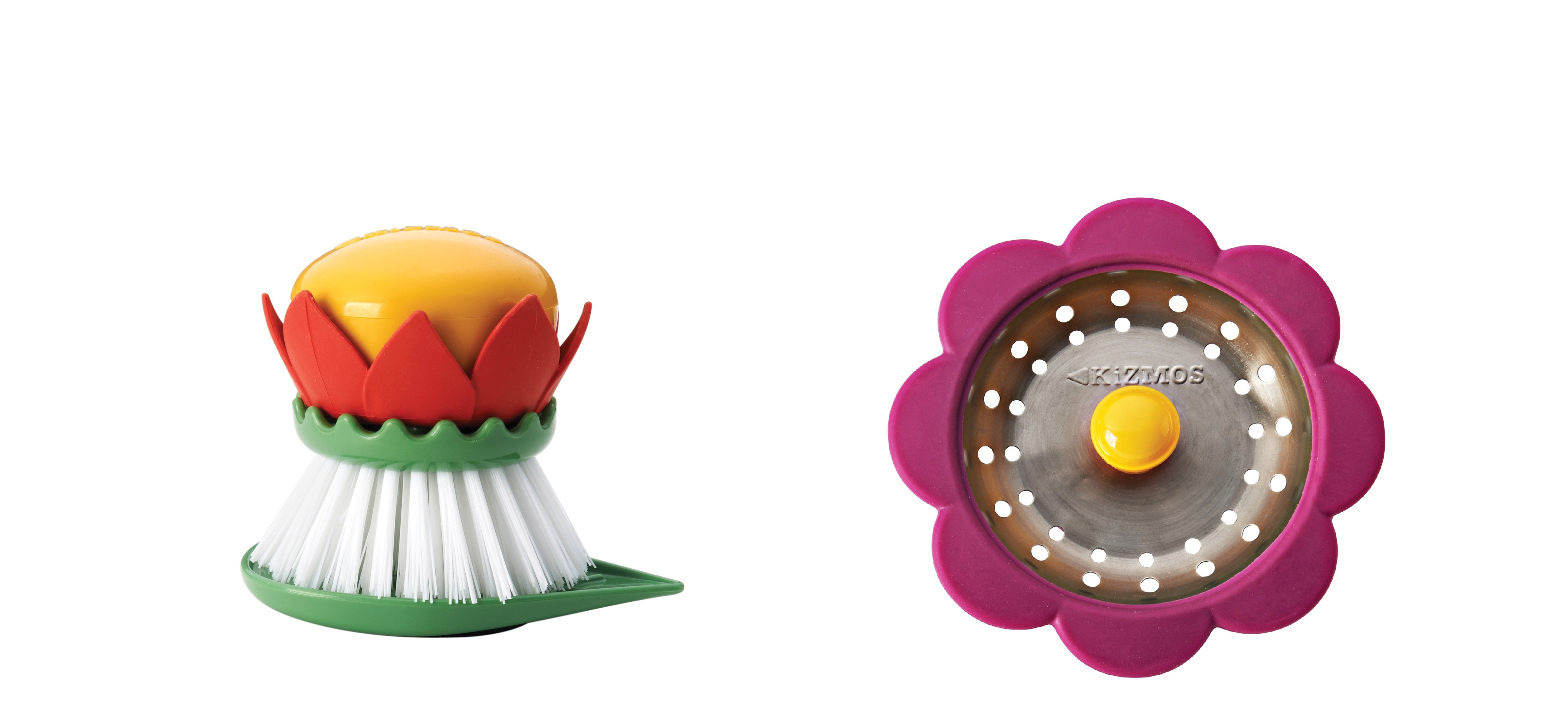 Auch an den leidigen Abwasch nach dem Kochen wurde gedacht. Abflusssieb und Spülbürste in Blumenform machen die Arbeit gleich viel angenehmer und heben die Laune durch ihr fröhliches Design. Die Spülbürste ohne Griff liegt dank ihrem „Knauf“ besonders fest in der Hand und ist besonders praktisch, wenn man Töpfe schrubben muss.
