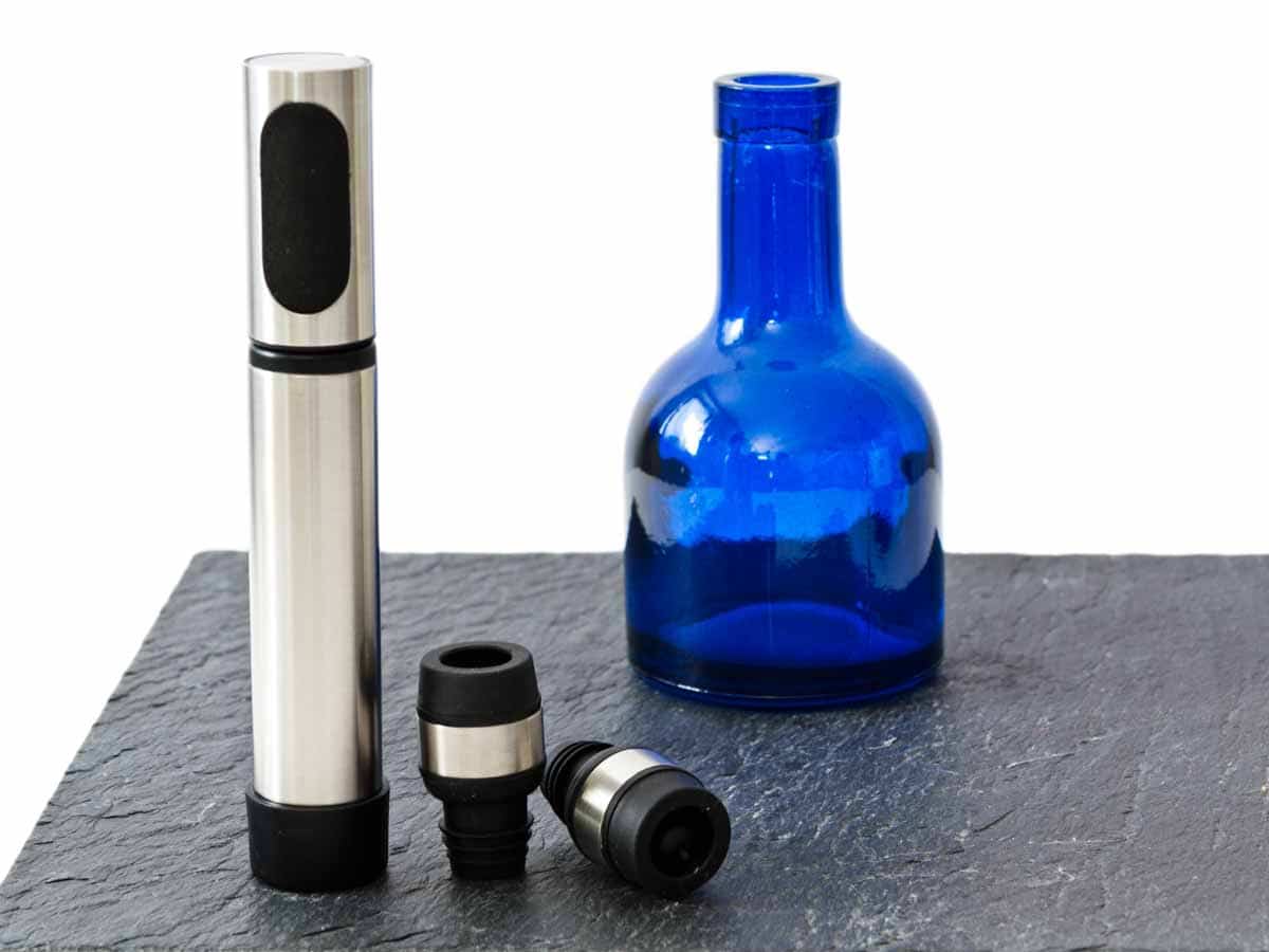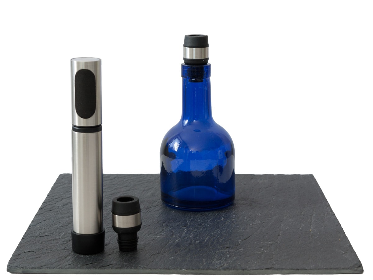 • Die Weinpumpe: Wie bereits erläutert, wird hiermit der in der Flasche befindliche Sauerstoff angepumpt. Das Vakuum vermeidet geschmacksverändernde Reaktionen und der Wein bleibt länger genießbar.