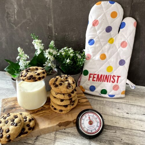In diesem Fall sind es klassische amerikanische Cookies: große runde Kekse, die außen knusprig und in der Mitte leicht zäh sind mit großen Schokoladenplättchen im Teig und kleinen Schokotropfen oben drauf. Direkt nach dem Backen wird eine reichliche Prise Salz auf den Keksen verteilt, dieser Kontrast zu der Süße gibt dem Ganzen den letzten Schliff und sollte auf keinen Fall weggelassen werden. Eine kleine Köstlichkeit perfekt zum Kaffee oder einem großen Glas Milch.