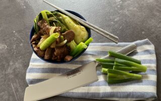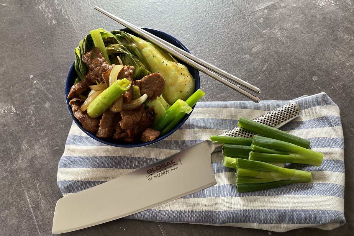 Mongolisches Rindfleisch mit Zwiebeln und PakChoi
