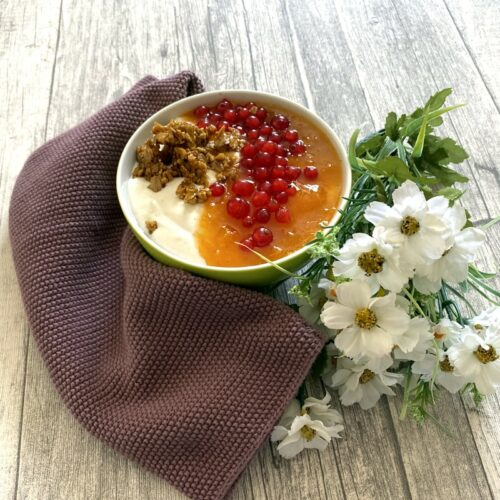 Quarkspeise mit Aprikosen-Johannisbeer-Kompott